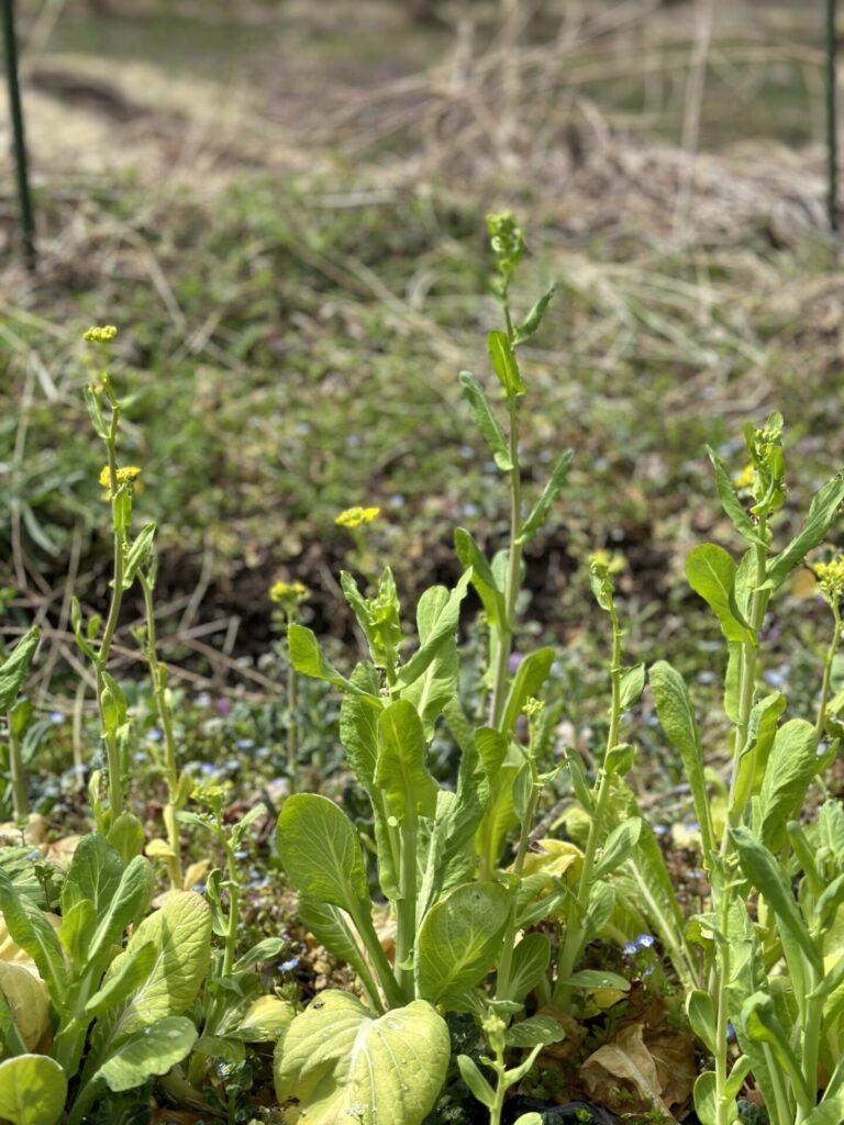 冬を越した菜花も、花より団子よろしく食べごろです。