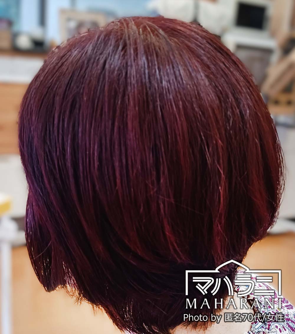 ライト加減で室内での髪色は色々に見えますが、濃いローズ系は気に入っています。
