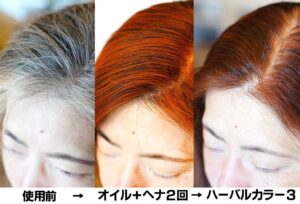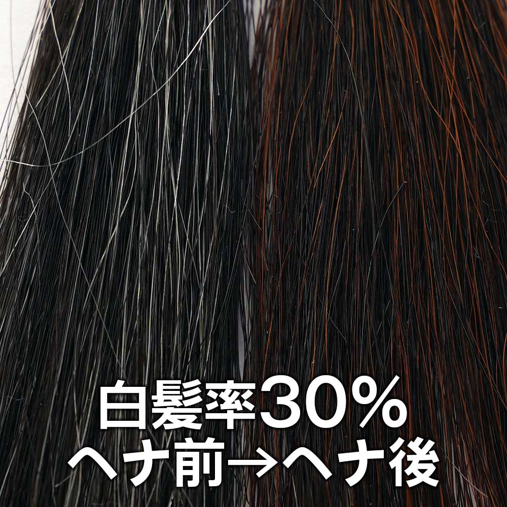 白髪20~30%は、マハラニヘナのやり方ではダークブラウンに発色