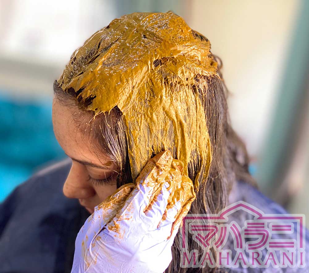 ヘナもたっぷり、オイルもたっぷり使ってこそ、ヘナ2~3回めくらいから劇的に仕上がりが向上します。通常、ボブ程度の髪の場合は、少なくても100gのヘナ石臼挽が必要です。24年産、マハラニヘナ石臼挽きの場合は、100gに、4倍のお湯を足します。必ず計測してください。適当にマヨネーズ状とやると、寝かせている間に緩くなりすぎてしまいます。