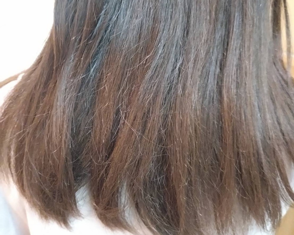 写真では伝わりにくいかもですが、毛先のパサパサがしっとりまとまるようになりました。手触りもチクチクしていたところが少しマシになった気がします。