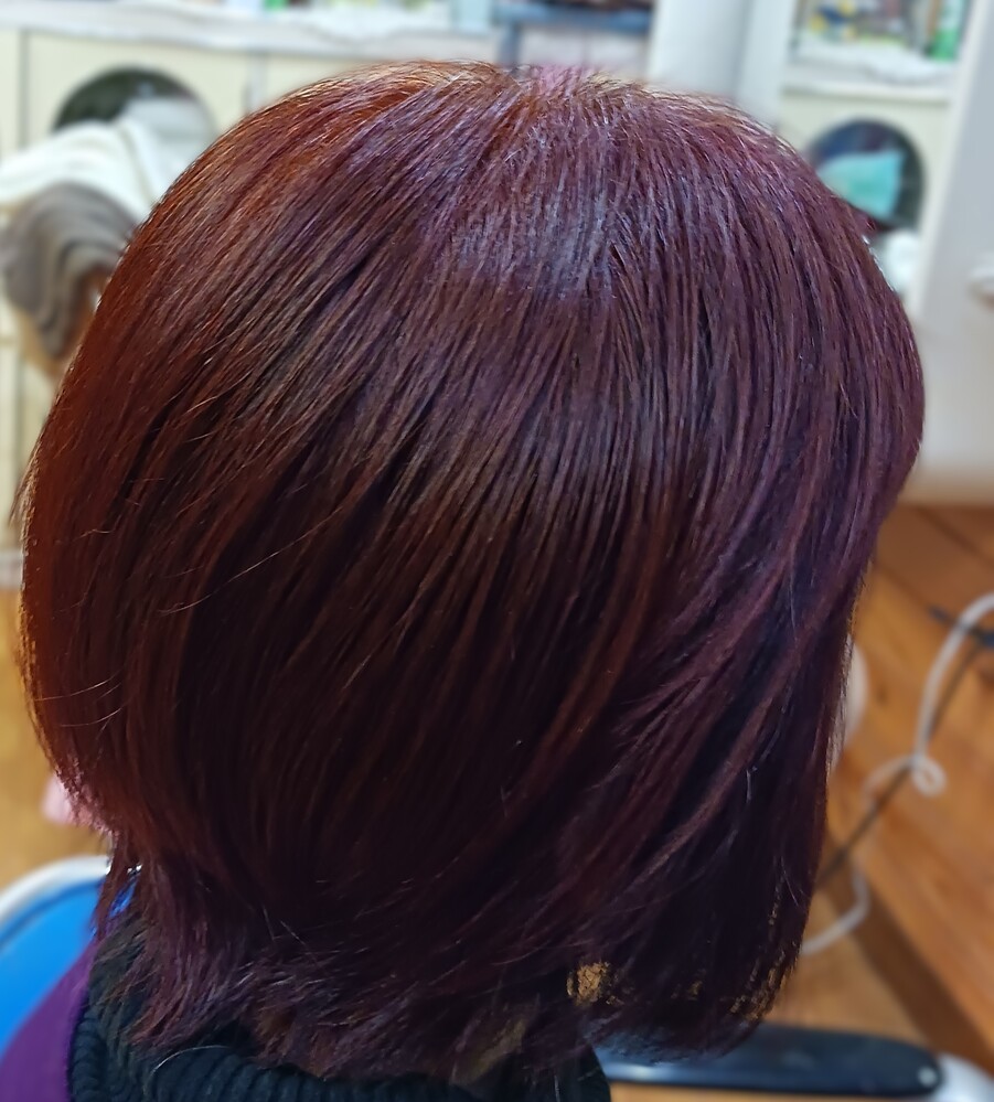 ライト加減で室内での髪色は色々に見えますが、濃いローズ系は気に入っています。
