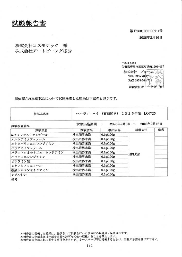 ヘナ、シカカイ、インディゴ、ニーム、リタのみ、パッチテスト用の数グラムのサンプルを差し上げます。お買い物の際はメッセージ欄にてパッチ希望の製品名と「パッチテスト用希望」と明記ください。また、パッチテスト用だけをご希望の場合は無償で郵送いたします、お問合せフォームにて、パッチテスト用をご希望の製品名と送付先を明記してください。