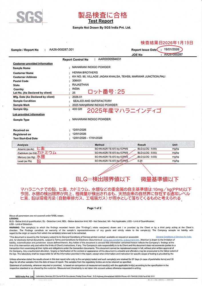 上写真例ではヘナ染め1時間、インディゴ後染め30分。ダークブラウン希望の場合はインディゴ後染め20分程度。染め時間調整でブラウン、ダークブラウン、ブラックへ染まります。ただし、髪質や髪の状態で染め時間は調整が必要。