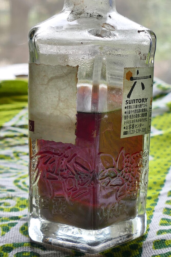 ウオッカに薔薇の花の色が鮮やかに移りました。